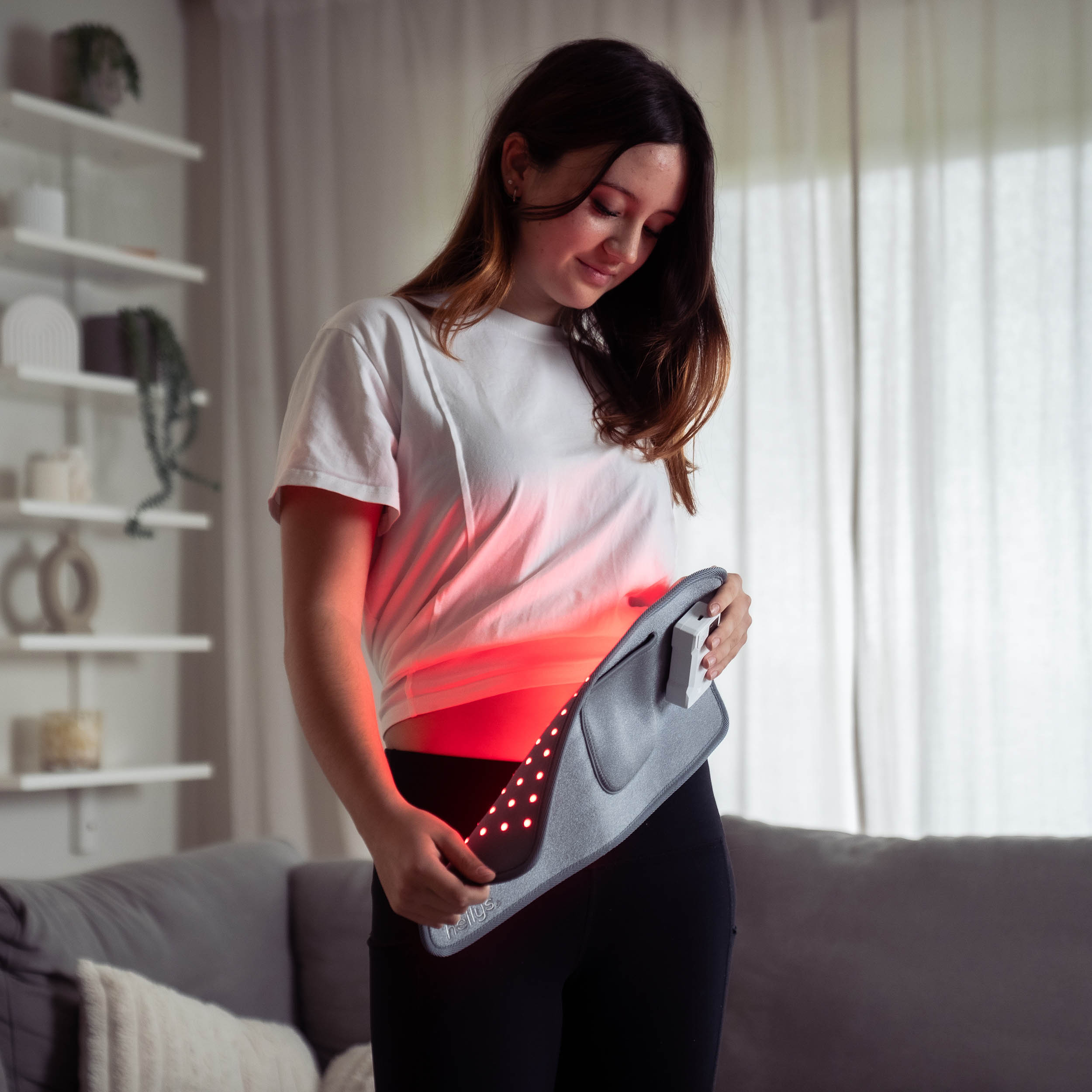 Gezielte Lichtanwendung im unteren Rückenbereich – besonders geeignet zur ergänzenden Pflege und Entspannung bei Belastungen und Verspannungen.
